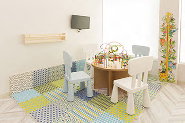 耳鼻咽喉科の診察室は、たくさんの専門器具に囲まれているため、恐怖心を抱くお子様が多いかと思います。いかにも「病院」という雰囲気を作ると、来院するまでの段階でお子様に抵抗が生じます。キッズスペースを作る事で、少しでもお子様のの恐怖心をとる工夫をしております。